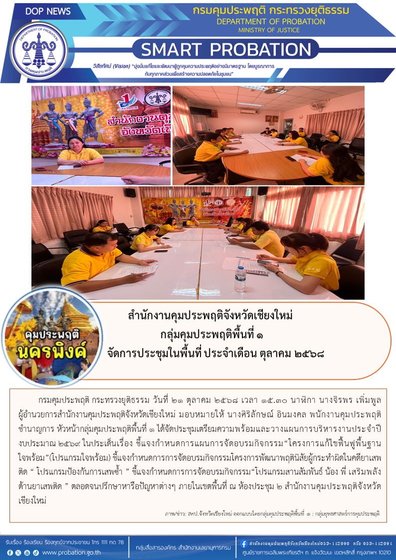 สนง.คป.จ.ชม.กลุ่มคุมประพฤติพื้นที่ 1 จัดการประชุมในพื้นที่ ประจำเดือน ตุลาคม 2568