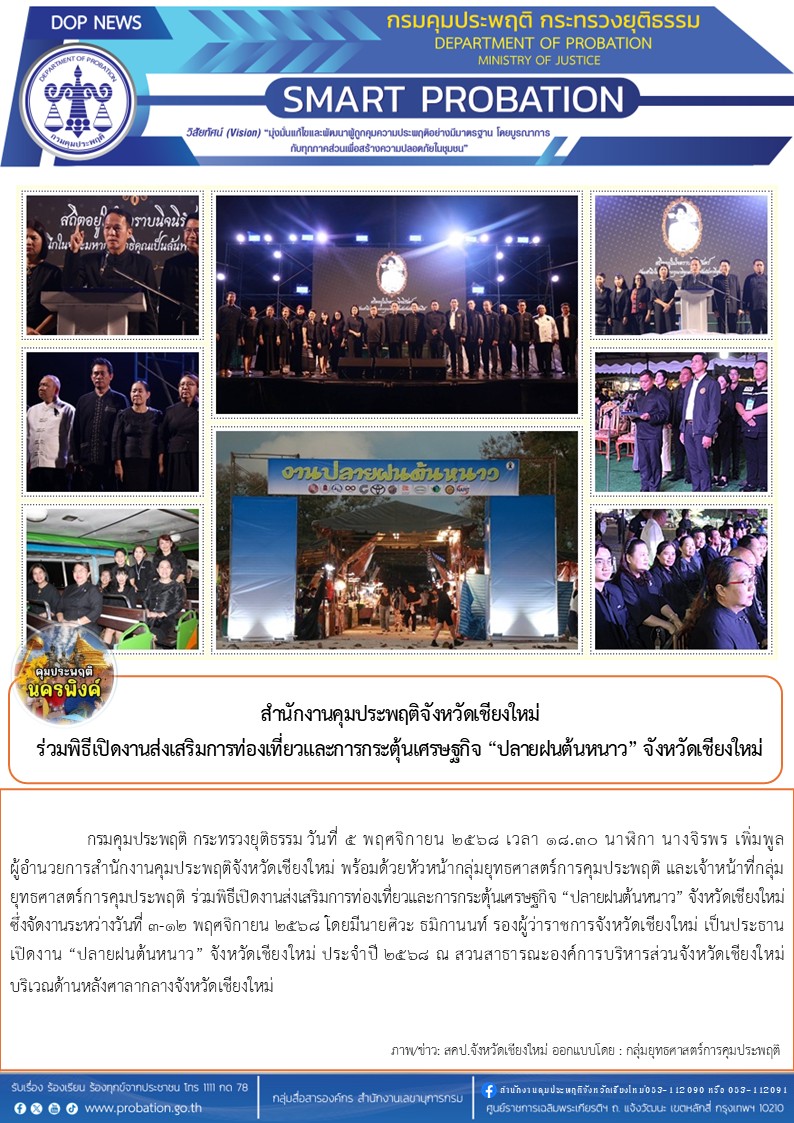สนง.คป.จ.ชม.ร่วมพิธีเปิดงานส่งเสริมการท่องเที่ยวและการกระตุ้นเศรษฐกิจ “ปลายฝนต้นหนาว